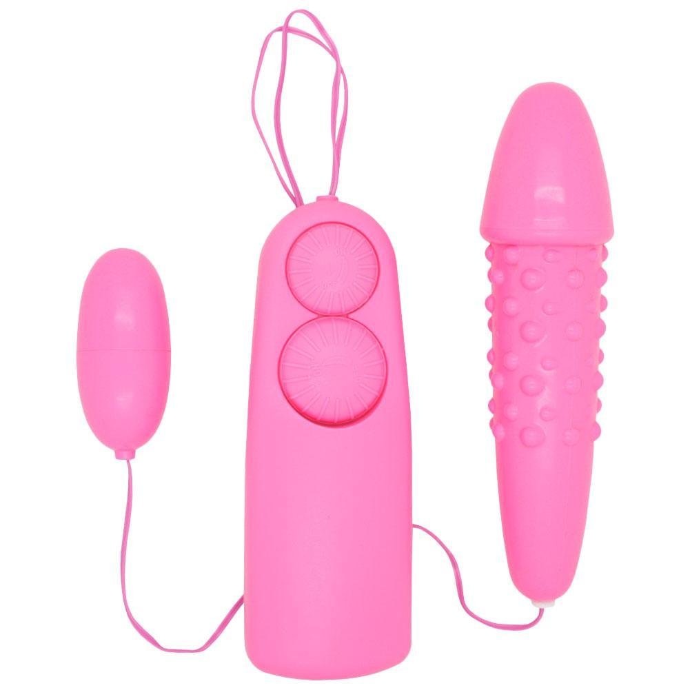 Double Up On Your Pleasure With This Vibrating Bullet Set!If you're a fan of our popular single bullet vibrator - you'll be sure to love this vibrating bullet set! You'll get two bullets attached to a hand held controller that's easy to operate. The hand held controller has two speed dials for each of the bullets and are simple to control with just a twist of the dial. One bullet has a smooth surface while the other one has a mushroom shaped head and raised bumps on the shaft. Since you can use this toy internally as well as externally, you can insert the bigger bullet while using the other bullet on your clit. The textured shaft will feel amazing as it vibrates and massages your inner walls! Having double stimulation is sure to give you an extremely powerful orgasm!This bullet set is extremely versatile and can be used in many different ways. Use it on yourself during masturbation, use it against your clit or your nipples for extra stimulation, or you can even use it during sex with your partner. You could you use one bullet on yourself and use the other to massage your partners shaft or perineum while you're performing oral. Anyway you use it - it's sure to spice things up! Clean up is easy with antibacterial sex toy cleaning wipes or your favorite toy cleaner. Check out some of our go-to accessories below!Requires 3 AA Batteries (Not Included)
